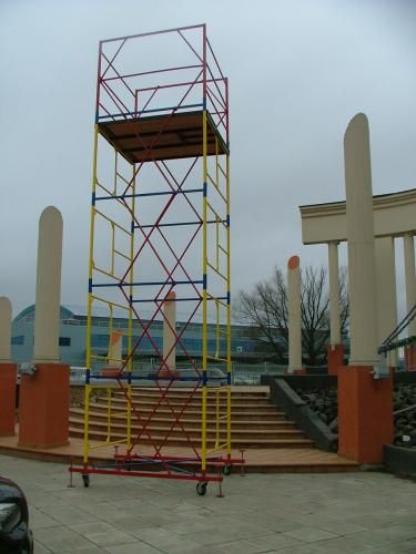 Вышка тура передвижная - это конструкция башенного типа, представляющая собой каркасную систему. Передвижная сборно-разборная вышка-тура предназначена для внутренних и наружных монтажных работ в условиях ограниченного доступа. Высота башни–до 21м. Комплектуется настилами, колесами, домкратами и стабилизаторами, что делает туру устойчивой, мобильной и безопасной в работе.